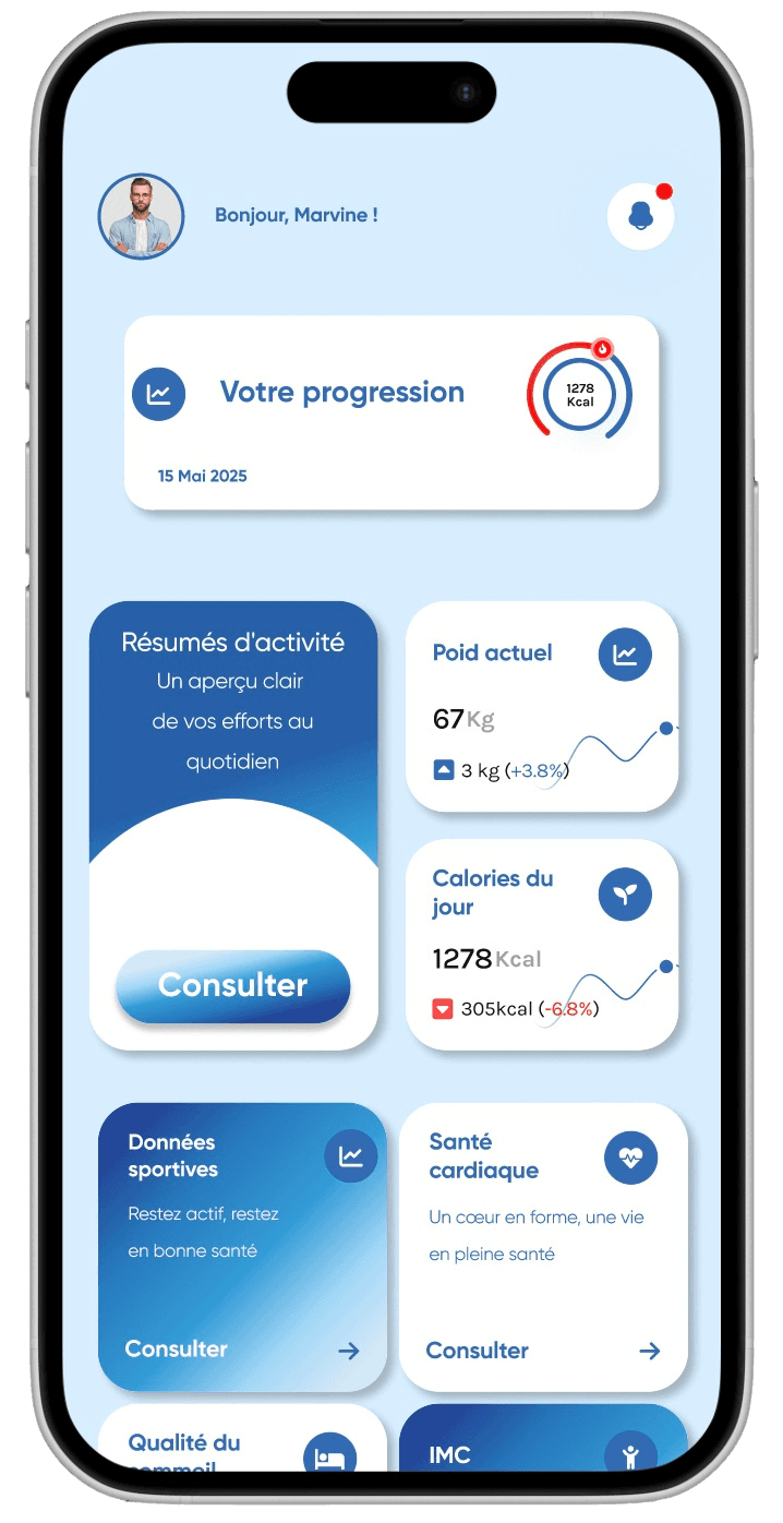 Des données claires, des outils précis et un suivi complet pour vous accompagner chaque jour. Téléchargez l’application et vivez l’expérience Harmony.